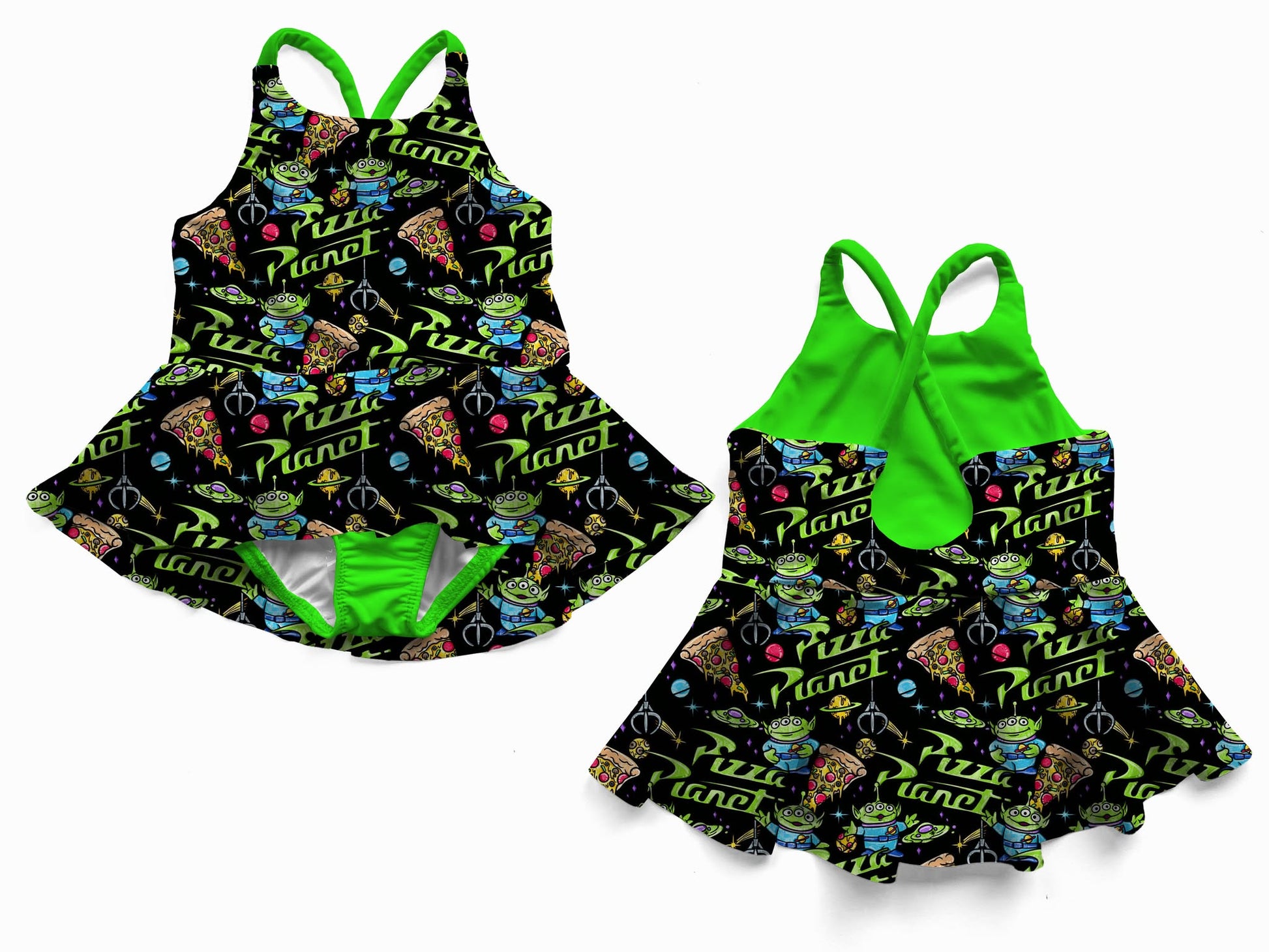 Pizza Planet Safe Swim Skirted One Piece - NEON GREEN (Highest visibility in lakes & dark water)